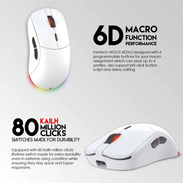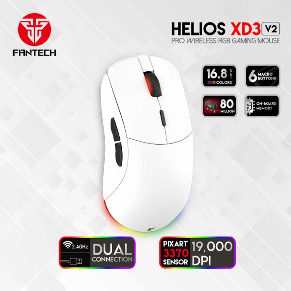 FANTECH MIŠ GAMING 19000 DPI DUAL ŽIČNI I BEŽIČNI HELIOS XD3 V2 SPACE ED. BIJELI - MD-FANTECH-XD3-V2-W - MIŠEVI I PODLOGE