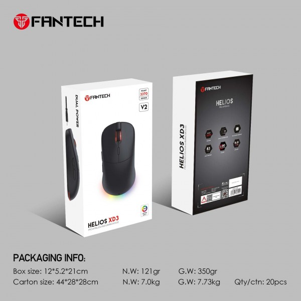 FANTECH MIŠ GAMING 19000 DPI DUAL ŽIČNI I BEŽIČNI HELIOS XD3 V2 CRNI - MD-FANTECH-XD3-V2-B - MIŠEVI I PODLOGE
