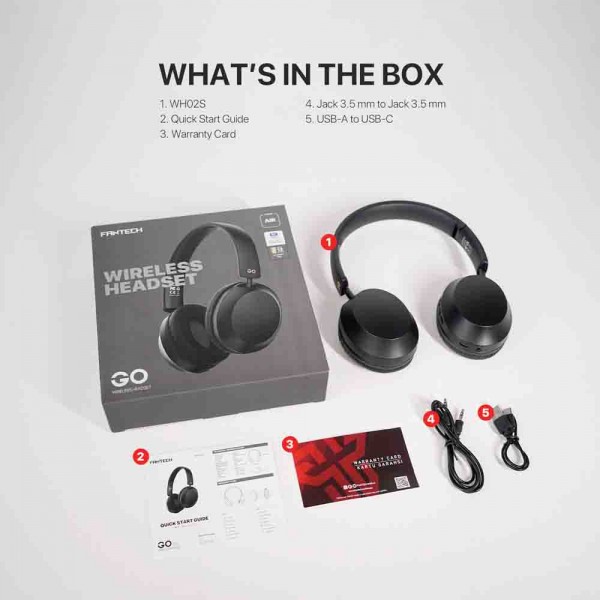 FANTECH BLUETOOTH STEREO SLUŠALICE BT5.0 3,5mm + TIP C GO AIR WH02S CRNE - MD-FANTECH-WH02-B - SLUŠALICE..